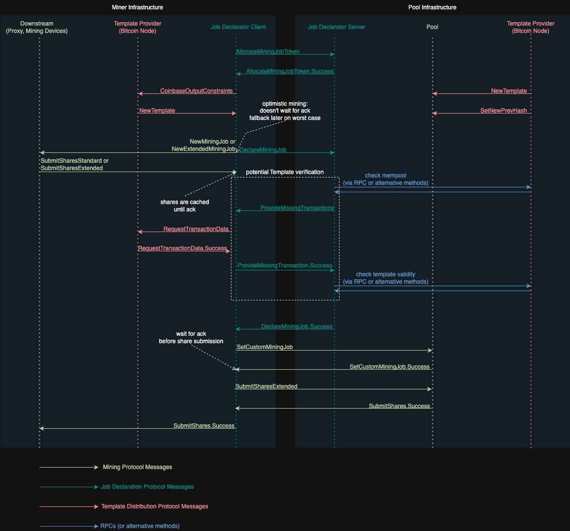DeclareMiningJobto JDS (containing thetxidof every transaction in the template). - JDS could potentially request for JDC to reveal